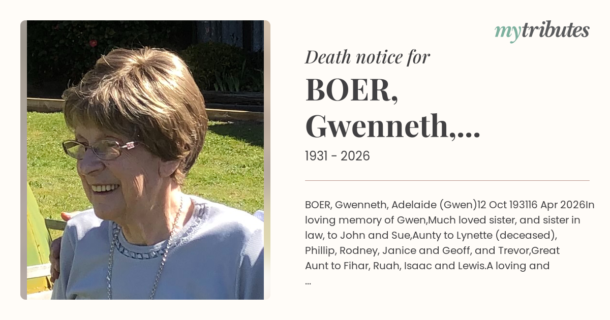 21°CBOER, Gwenneth, Adelaide (Gwen)