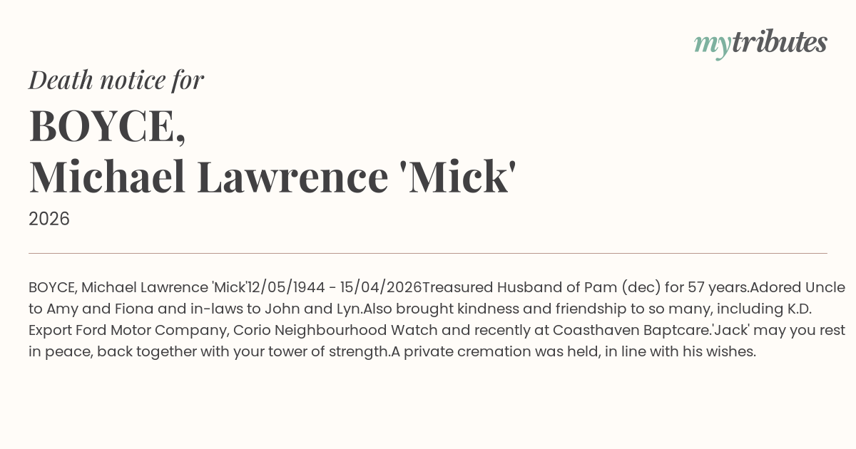 Funeral by : Tuckers Funeral & Bereavement Service Pty Ltd - Geelong West