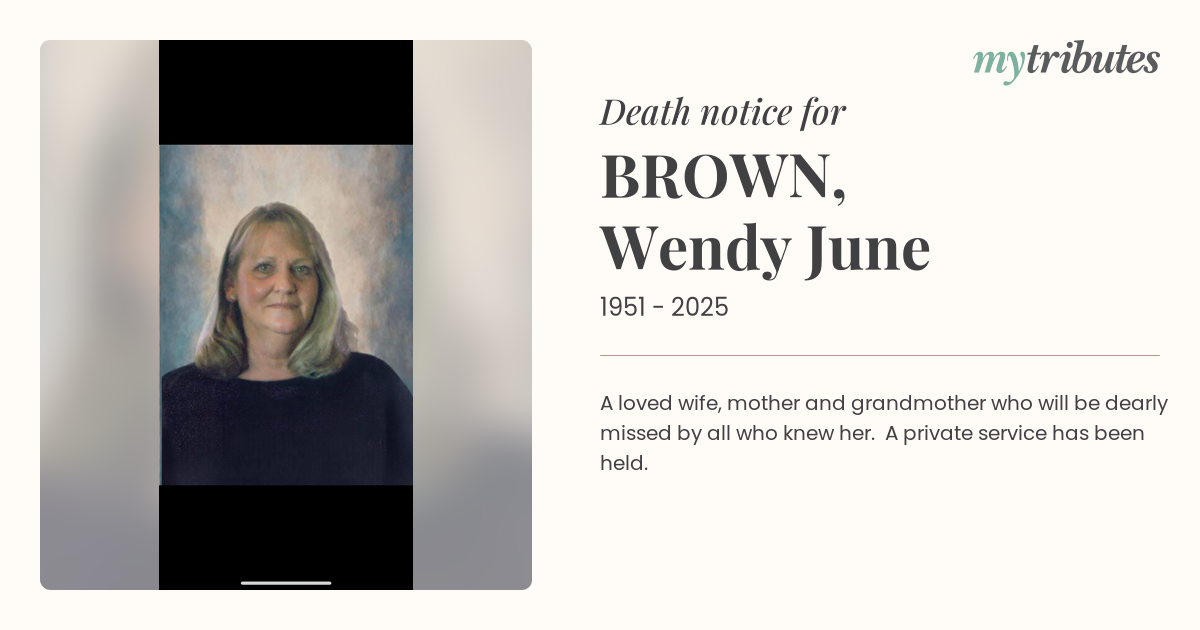 21°CA loved wife, mother and grandmother who will be dearly missed by all who knew her.