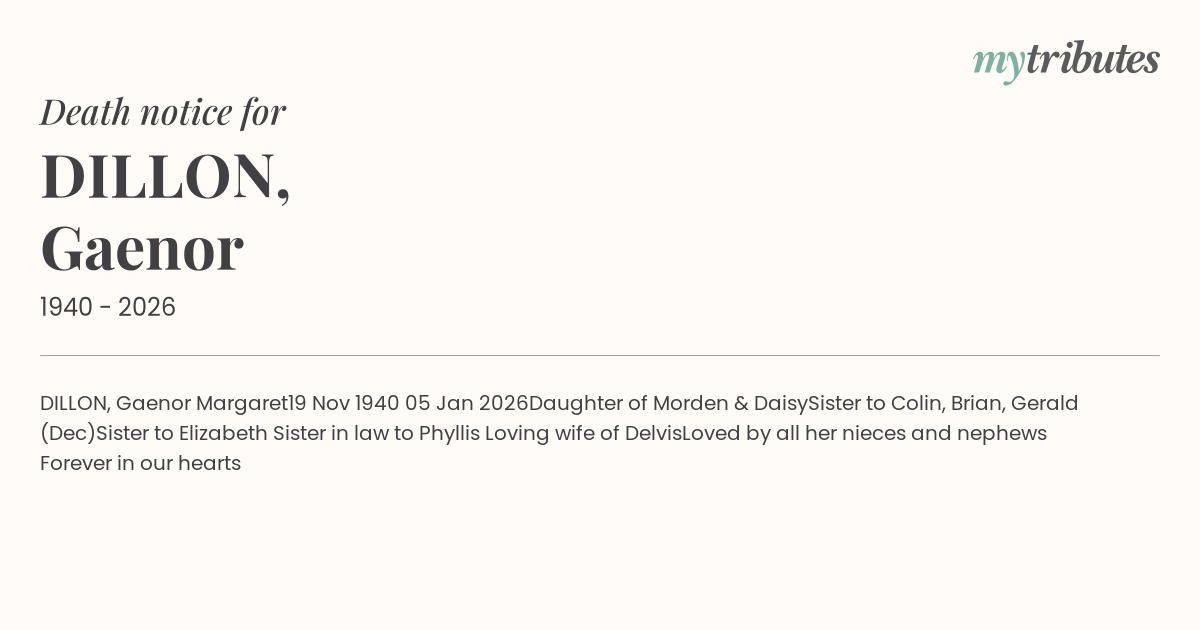 21°CDILLON, Gaenor Margaret