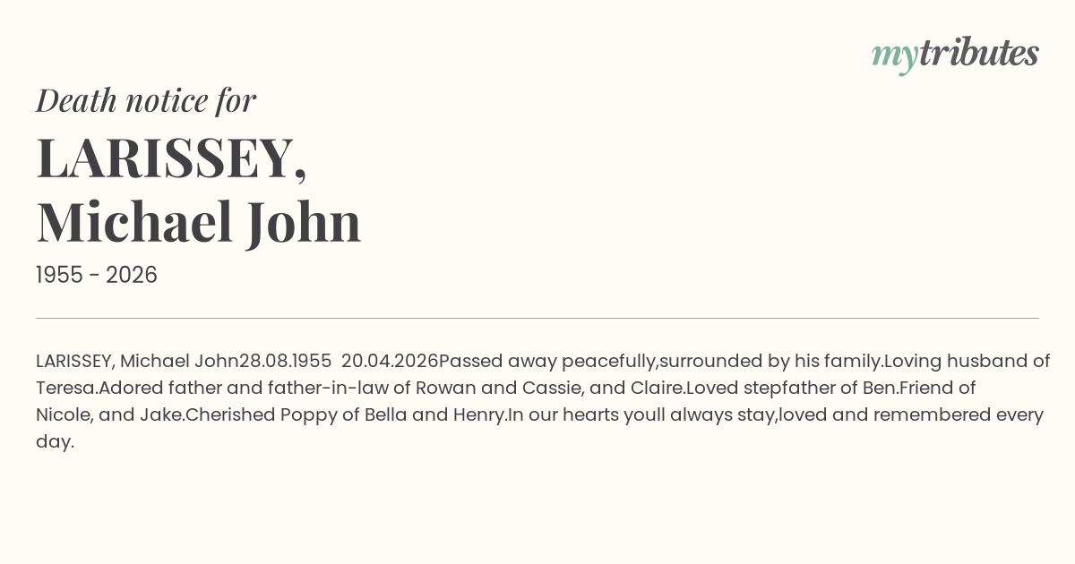 Adored father and father-in-law of Rowan and Cassie, and Claire.