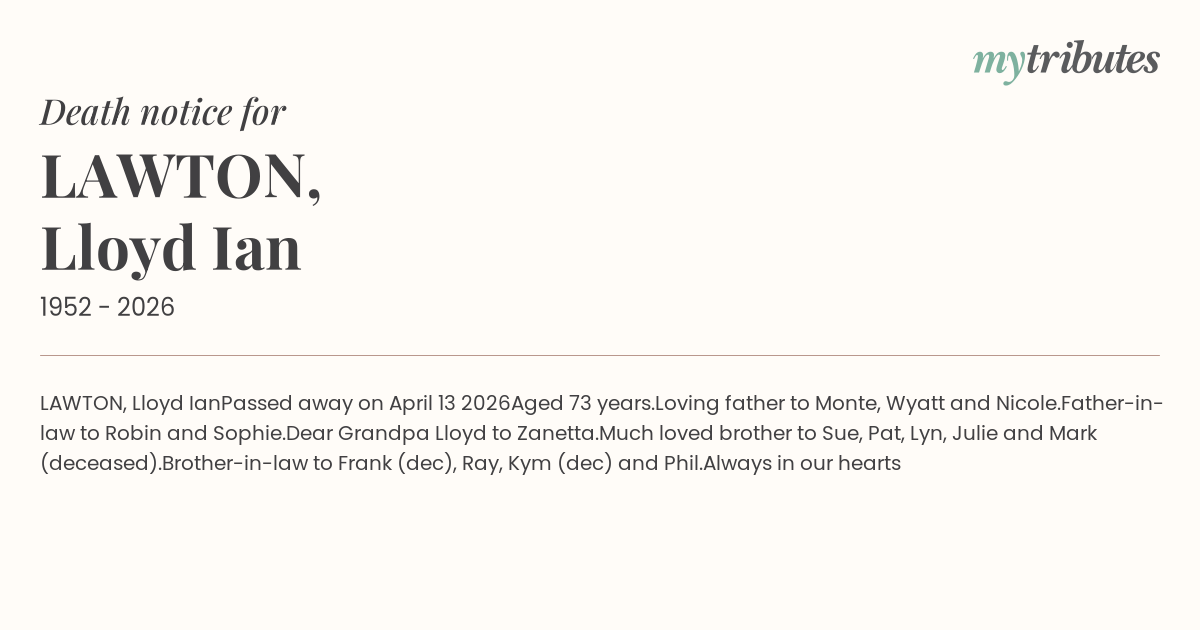 Much loved brother to Sue, Pat, Lyn, Julie and Mark (deceased).