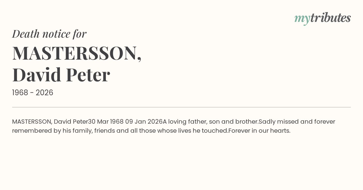 Sadly missed and forever remembered by his family, friends and all those whose lives he touched.