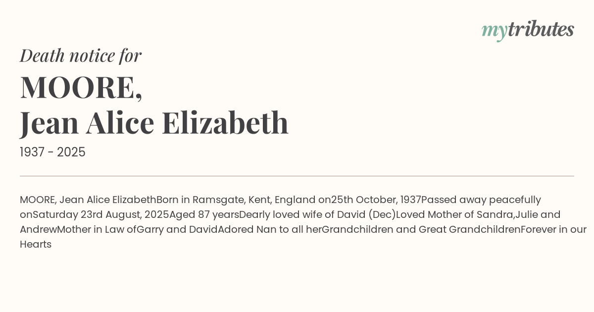 21°CMOORE, Jean Alice Elizabeth