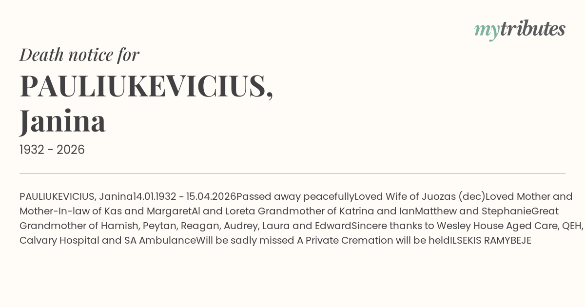 14.01.1932 ~ 15.04.2026