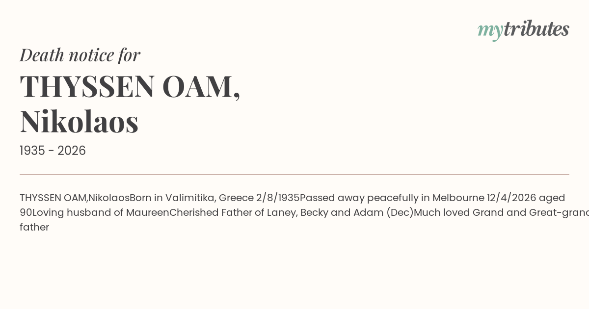 Passed away peacefully in Melbourne 12/4/2026 aged 90