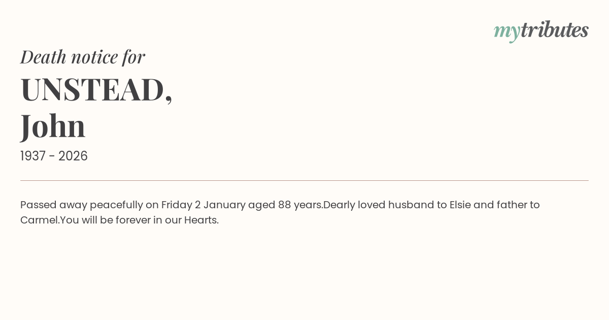 21°CPassed away peacefully on Friday 2 January aged 88 years.