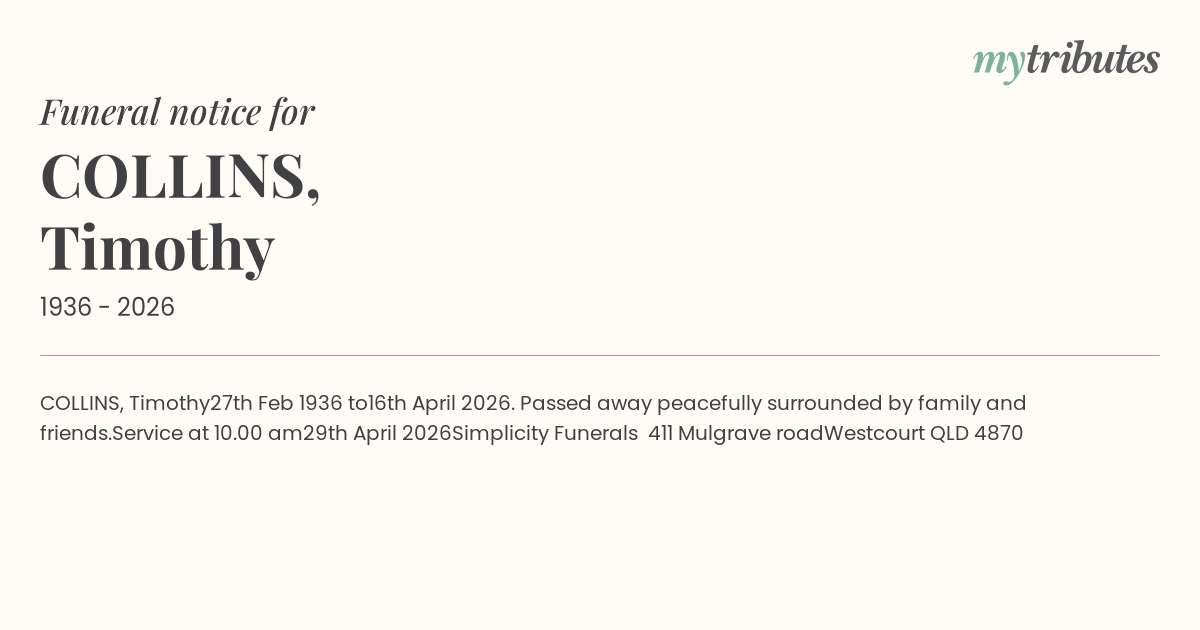 21°CCOLLINS, Timothy