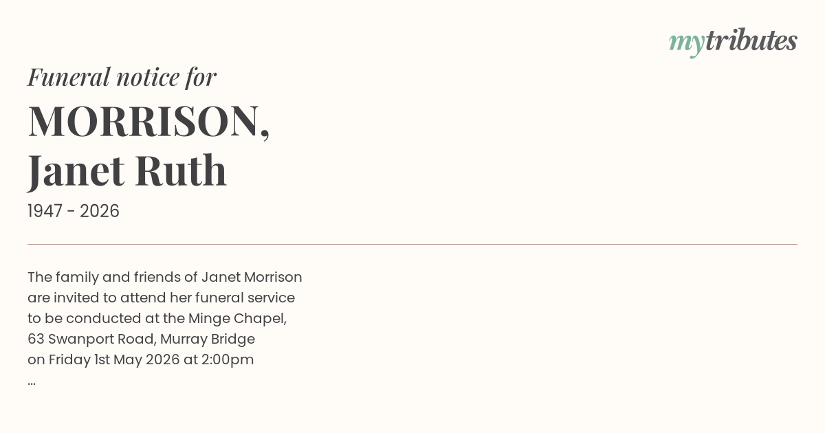 21°CThe family and friends of Janet Morrison