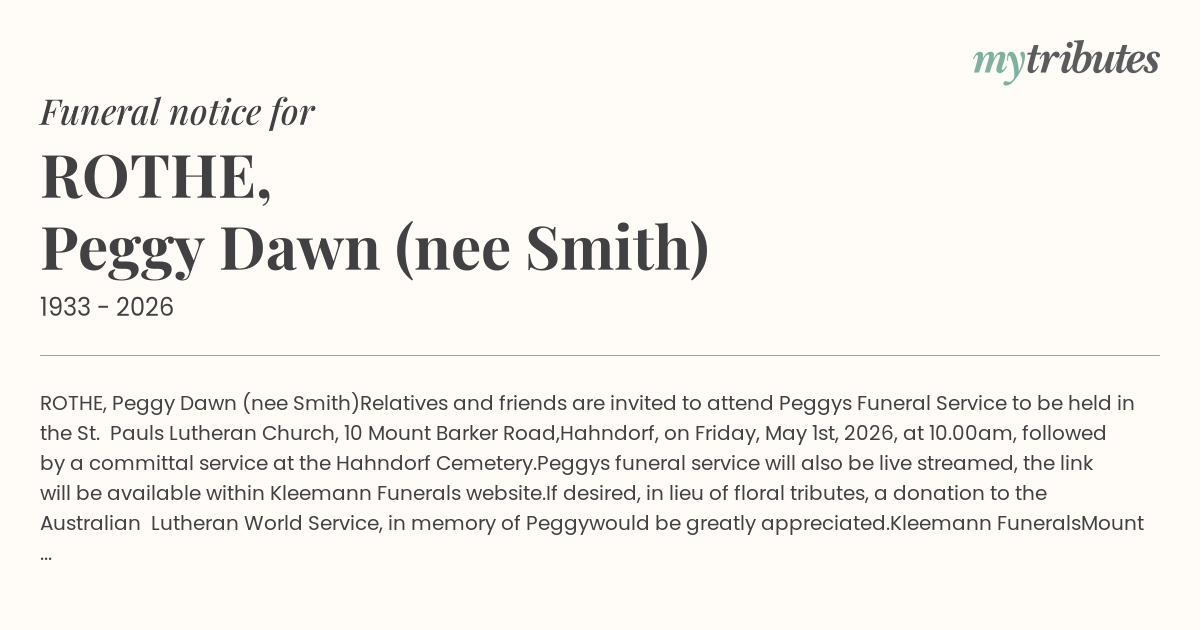 10.00am, followed by a committal service at the Hahndorf Cemetery.