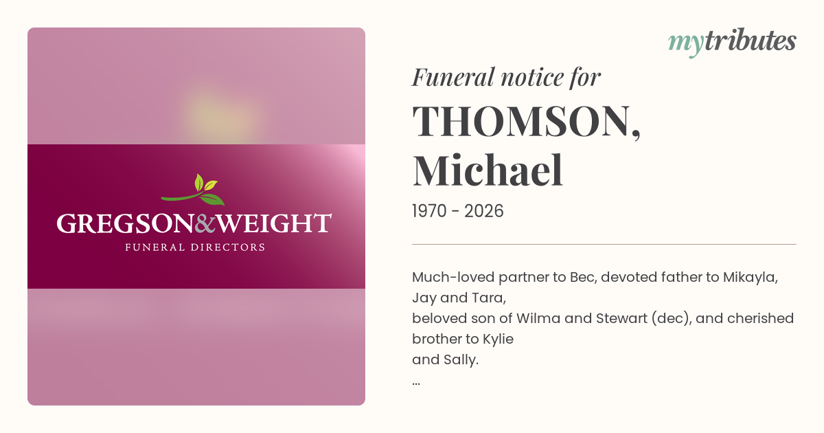 A Service will be held on the 20th of January 2026 at Gregson and Weight Chapel Buderim located, 159 Wises Rd, Sunshine Coast Queensland 4556
