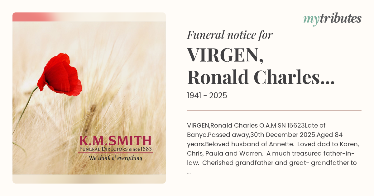Family and friends of Ron are invited to attend his funeral service in the Holy Trinity Catholic Church, 352 St Vincents Road, Banyo, on Wednesday, 14th January 2026, commencing at 11.00 a.m.